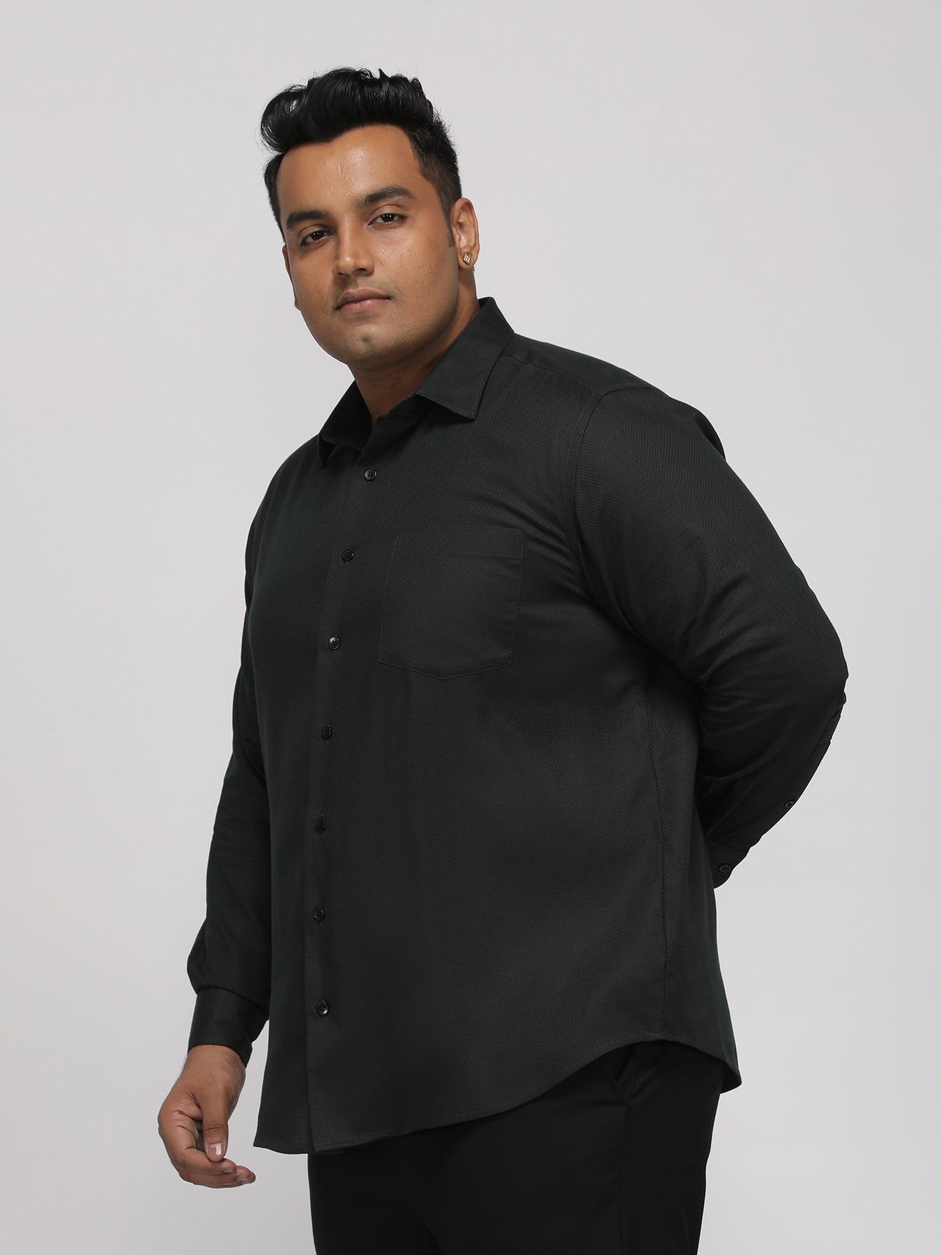 PLUS SIZE FESTIVE TENCEL COTTON STRUCTURE SOLID EVENING SHIRT FOR MEN | XL-7XL