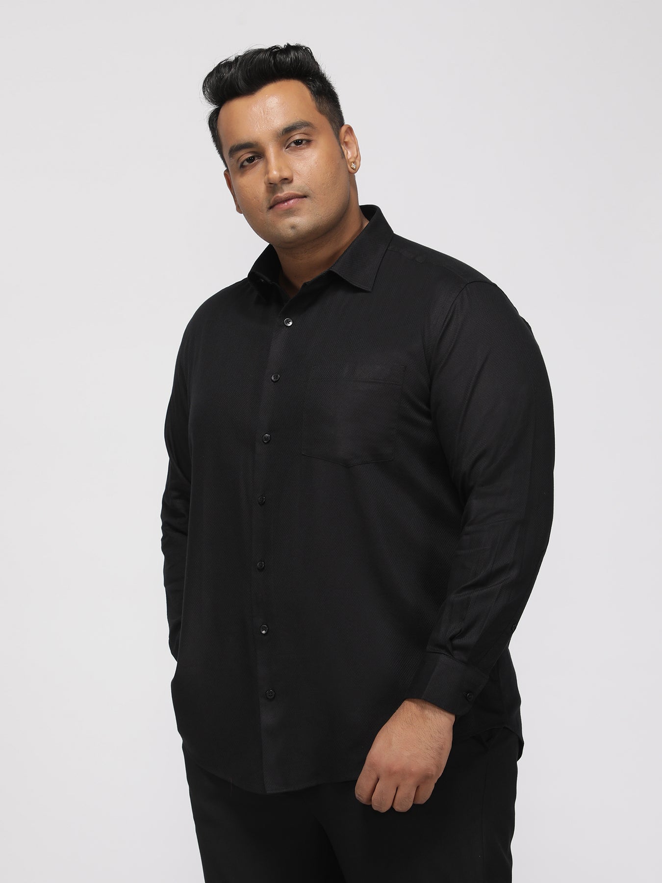 PLUS SIZE FESTIVE TENCEL COTTON STRUCTURE SOLID EVENING SHIRT FOR MEN | XL-7XL