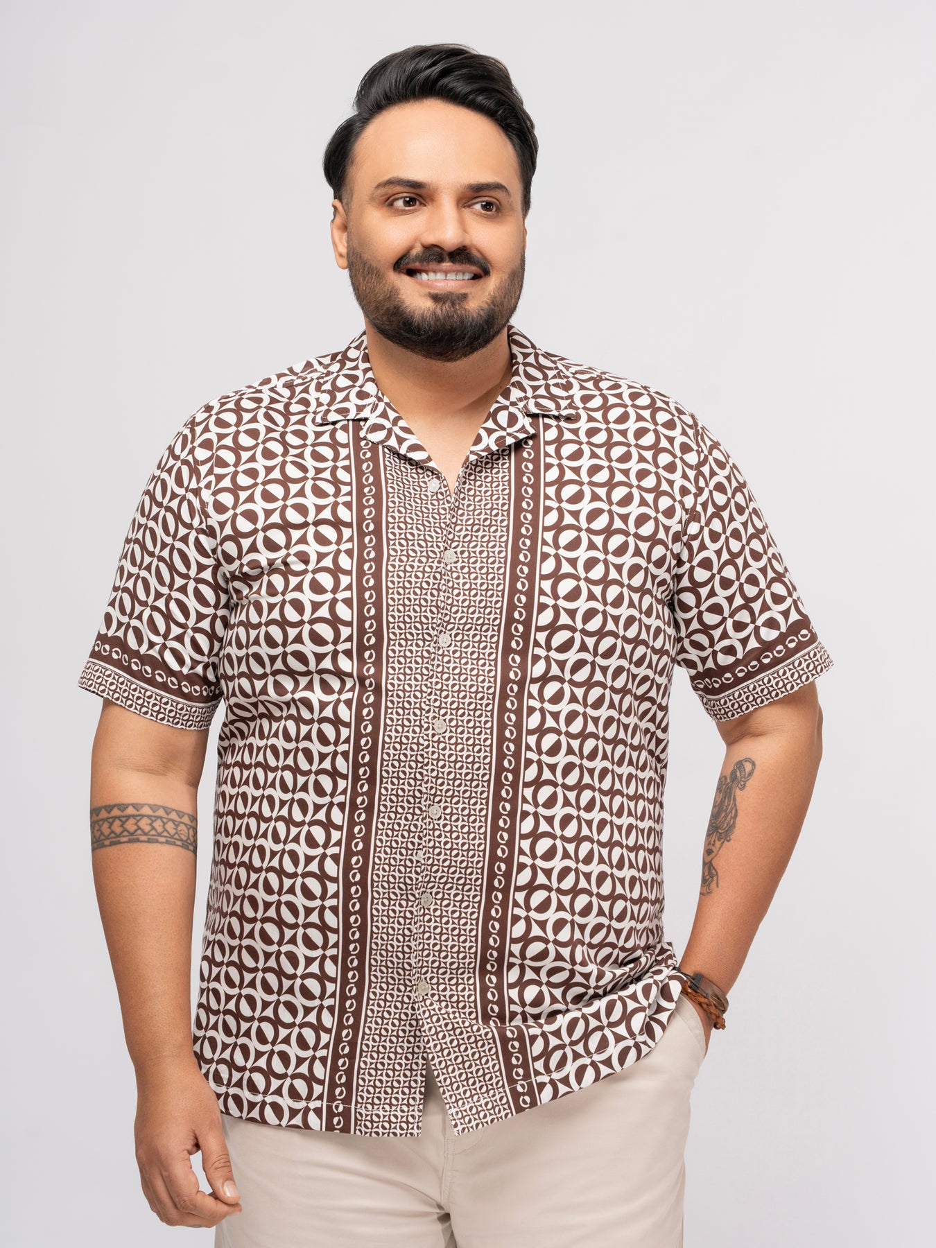 A stylish and comfortable shirt with these features Smartly folded pleat for a polished look Cuban collar to elevate the style Without pocket for a clean, modern vibe. sharp front opening for a classy look Half sleeve shirt for classy look. Turn heads at the party – style that celebrates your night!