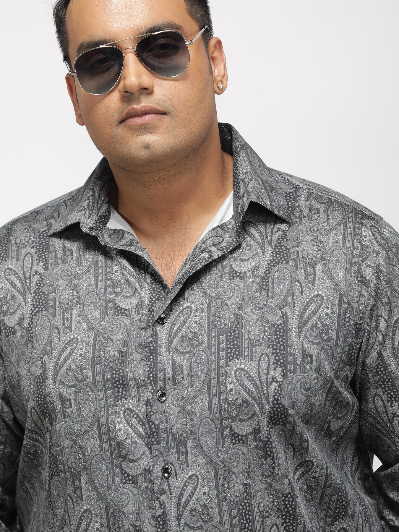 PLUS SIZE PRINTED GIZA SATIN PARTY SHIRT FOR MEN | XL-7XL