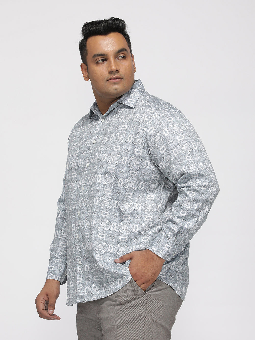 Plus Size Retro Tile Print Twill Stretch Shirt | XL-7XL