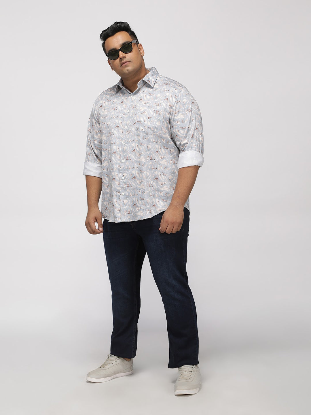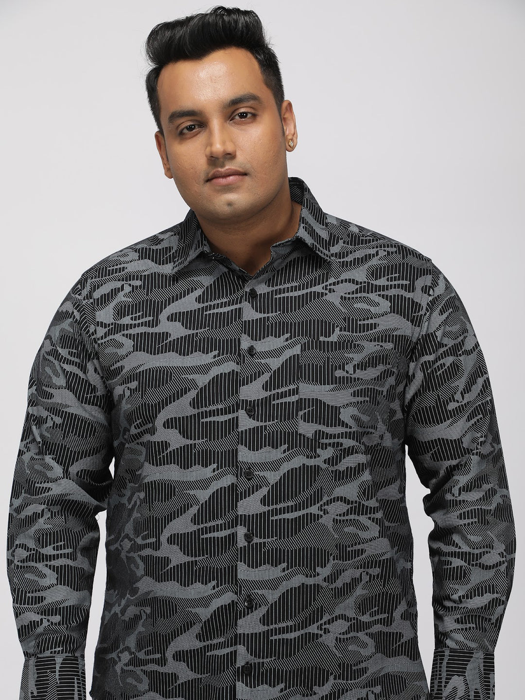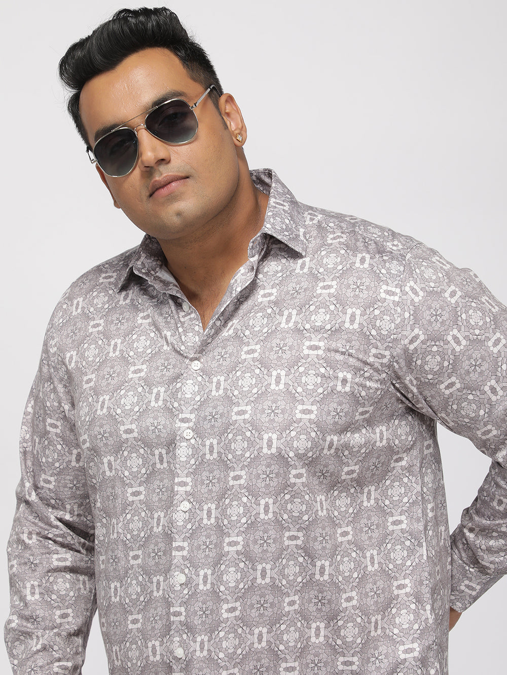Plus Size GEO PRINT SATIN SHIRT | XL-7XL