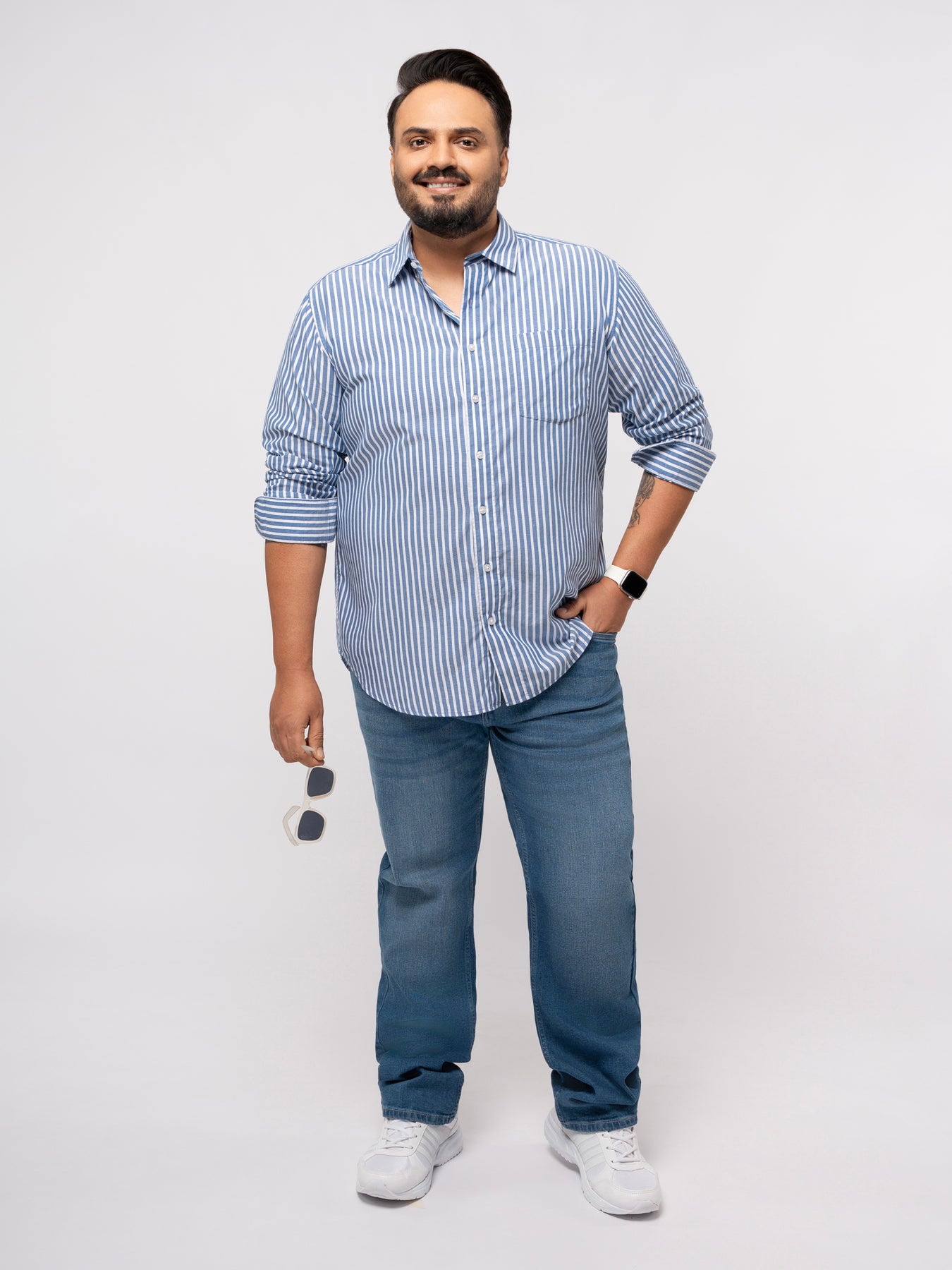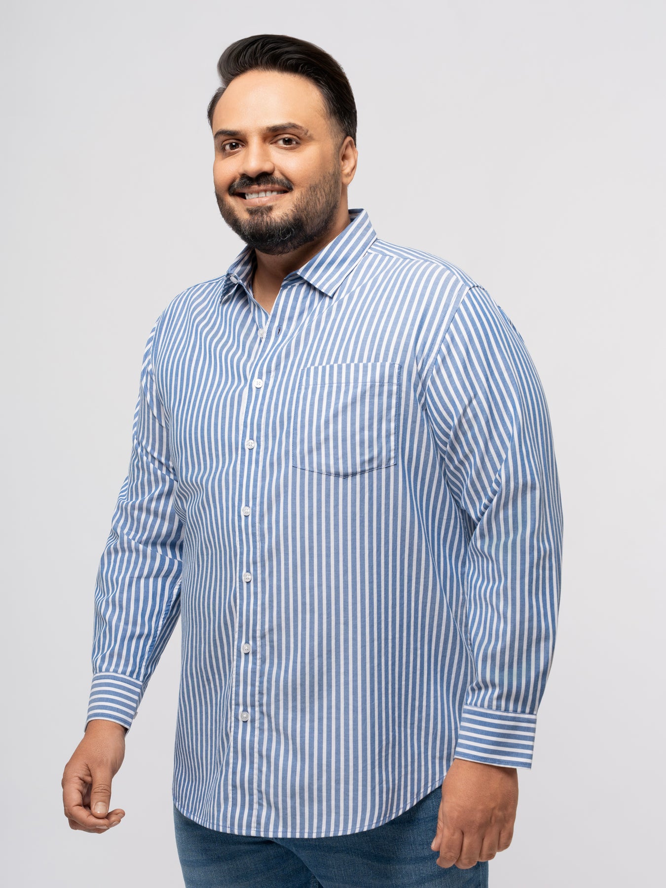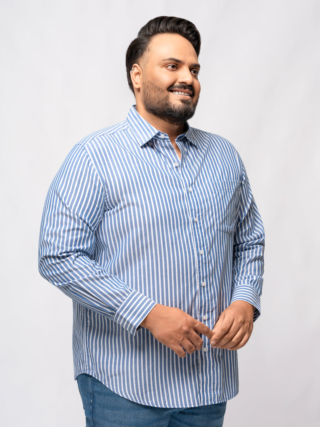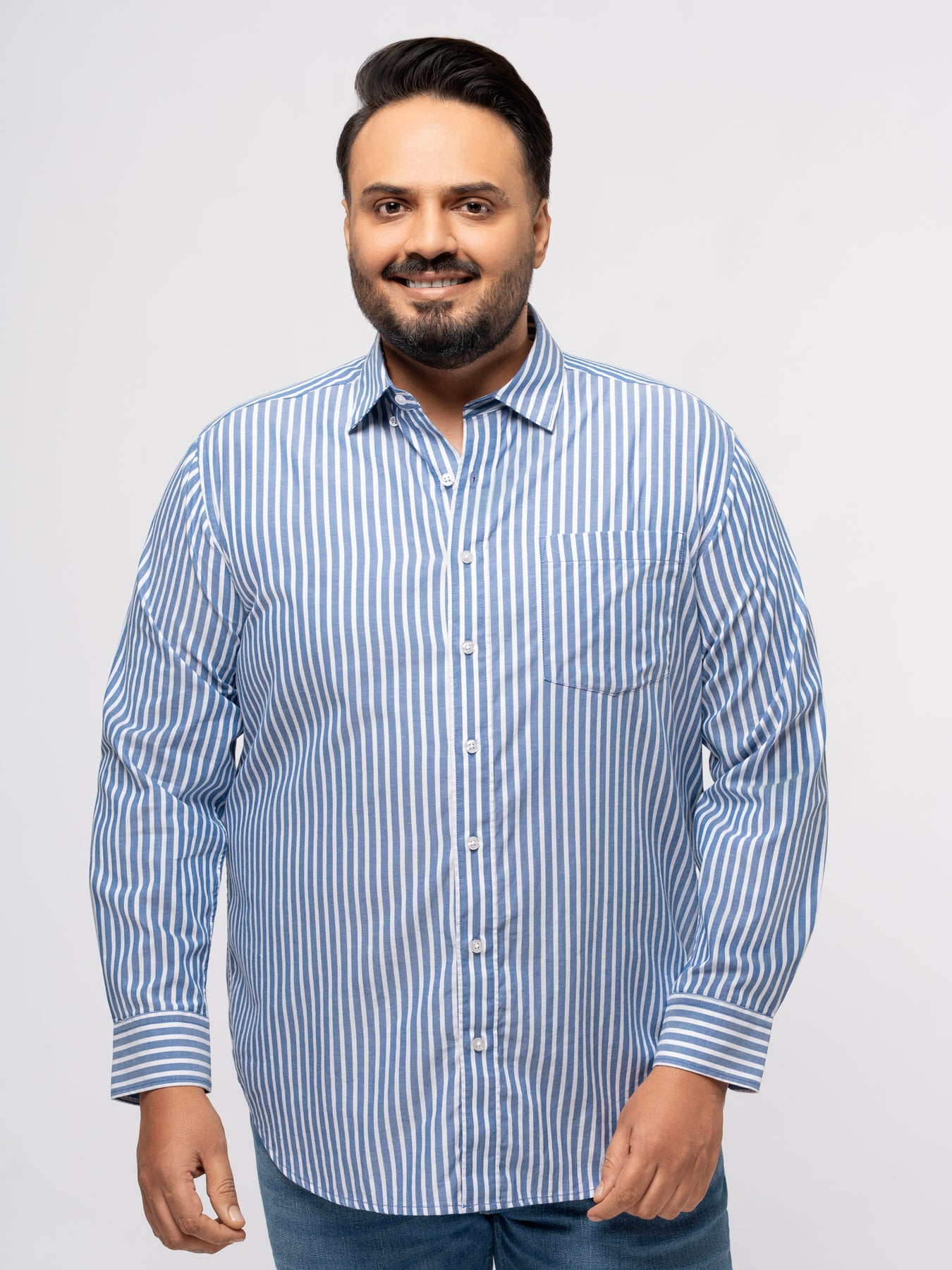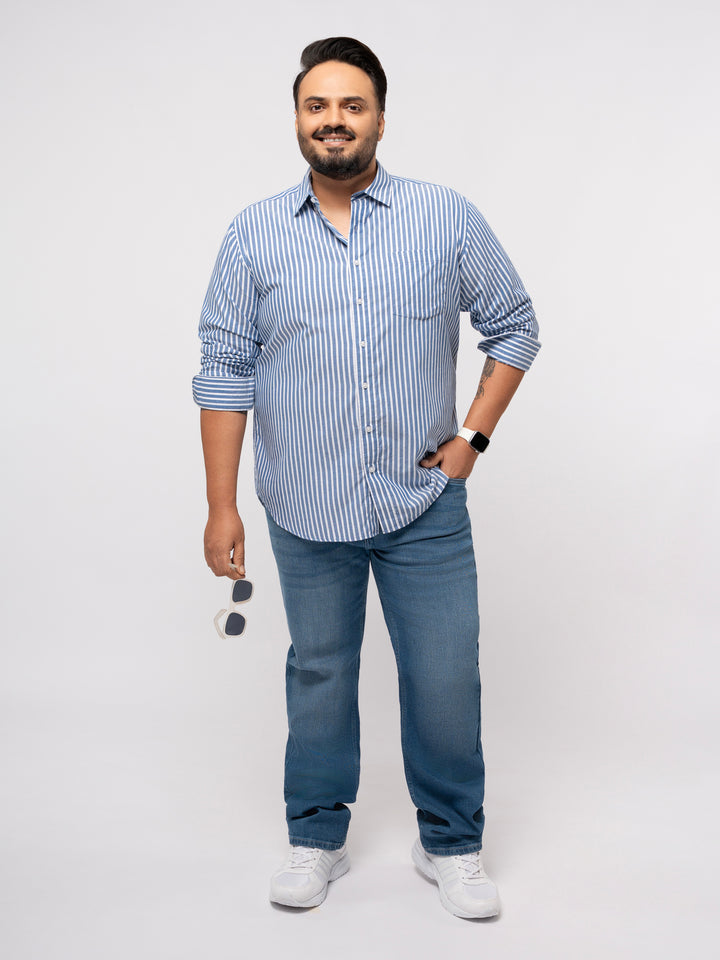 PLUS SIZE SMART CASUAL GIZA COTTON STRIPE SHIRT FOR MEN | XL-7XL