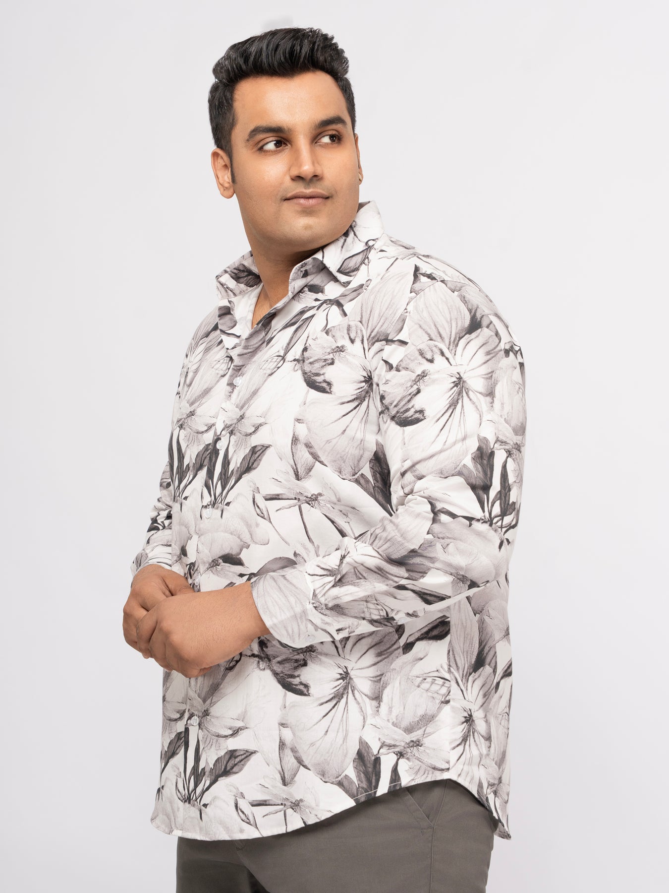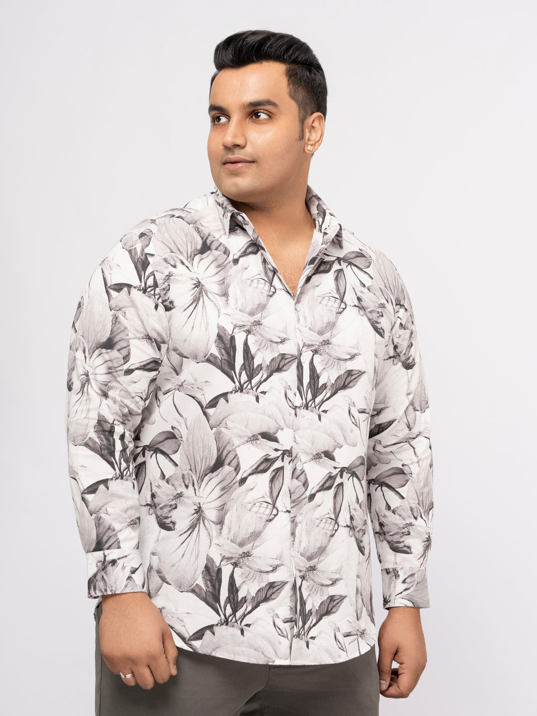 PLUS SIZE PRINTED STRETCH SATIN PARTY SHIRT FOR MEN | XL-7XL