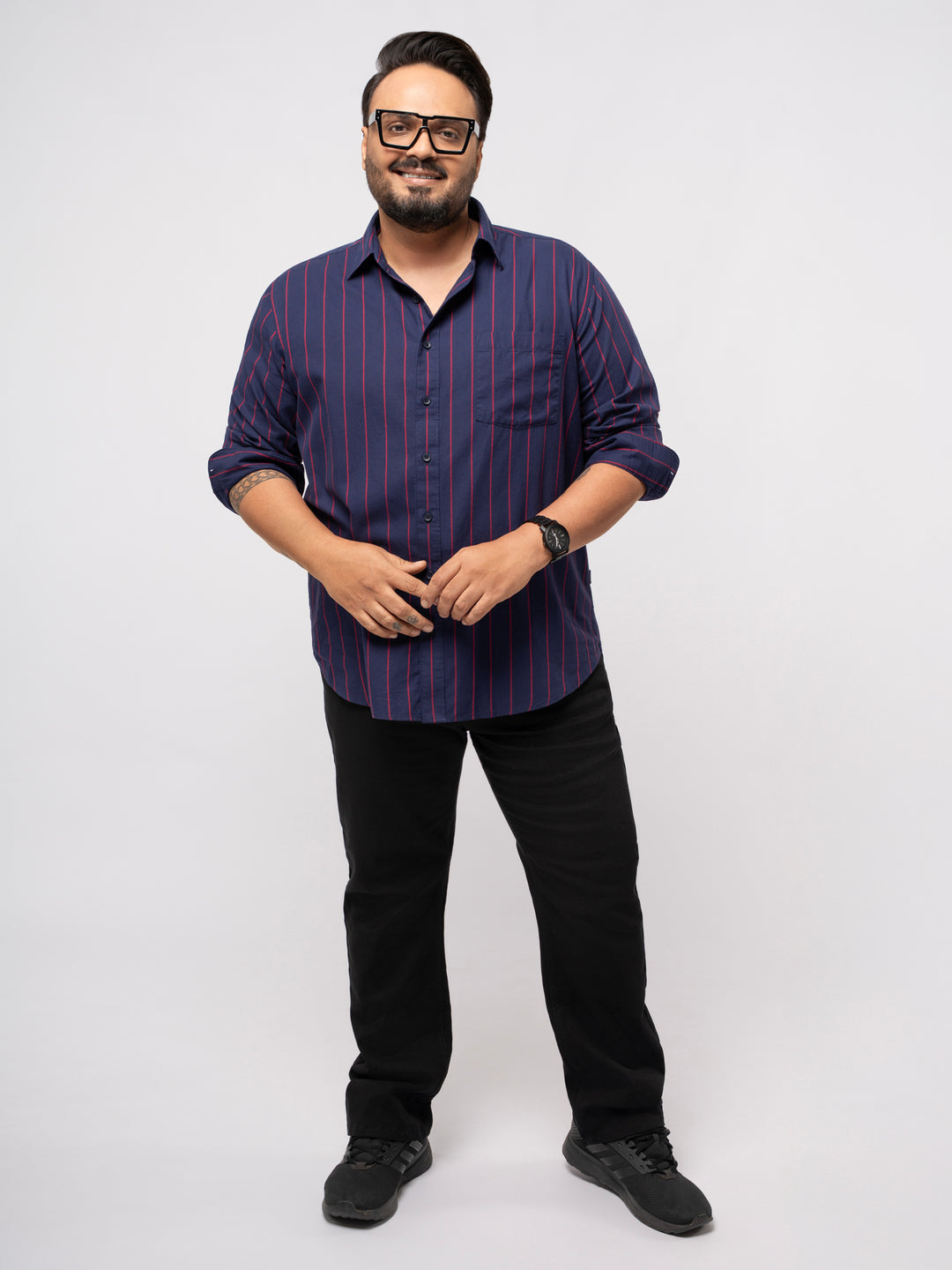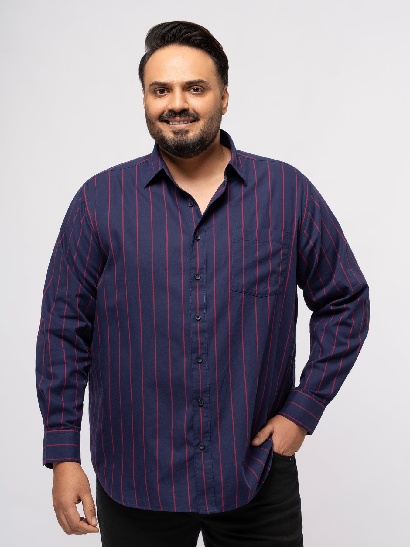 PLUS SIZE SMART CASUAL GIZA COTTON STRIPE SHIRT FOR MEN | XL-7XL