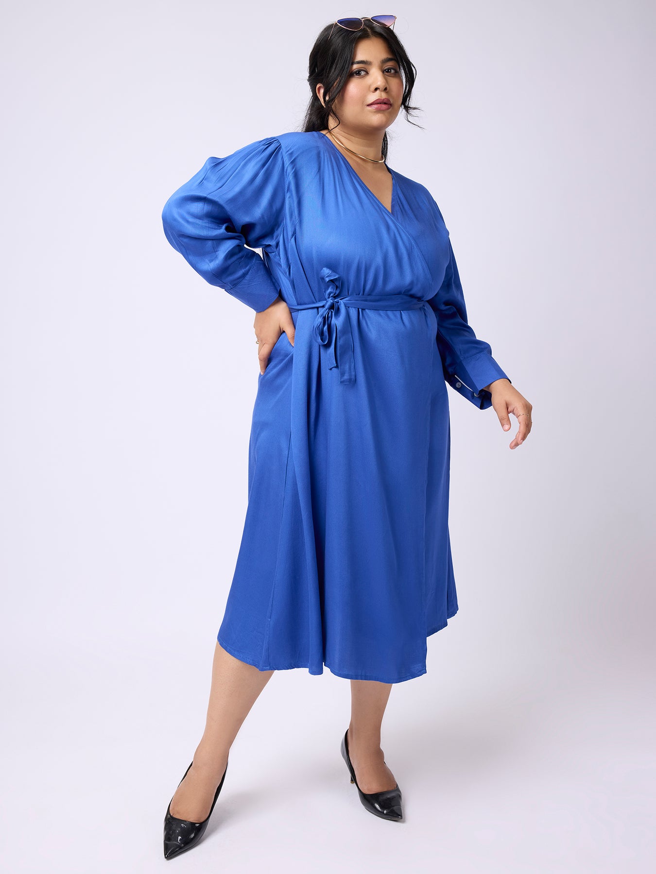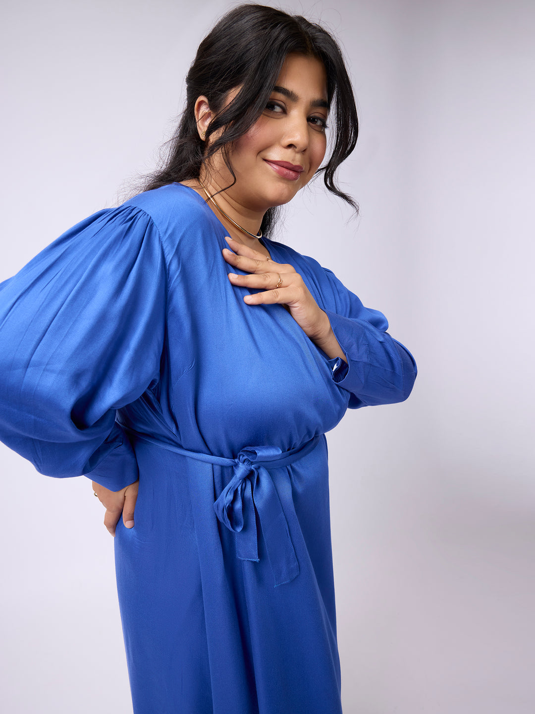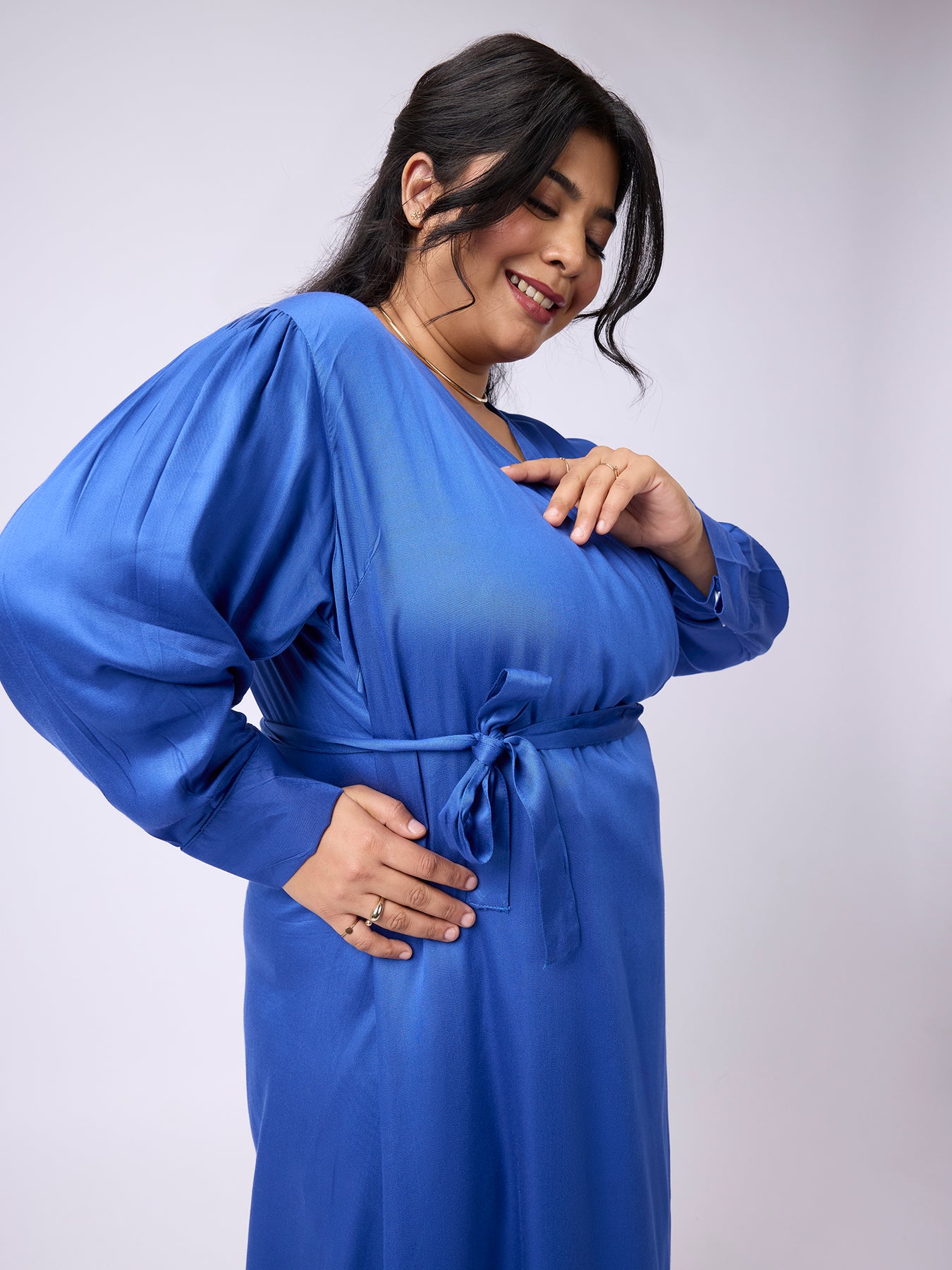Plus Size SOLID WAIST KNOTTED A-LINE DRESS | XL-7XL
